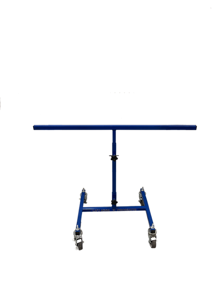 The stand has 3” swivel brake casters that make moving parts an easier task. The upper adjustment bar is telescopic, allowing the painter to raise or lower the parts into the perfect position for the highest quality outcome.